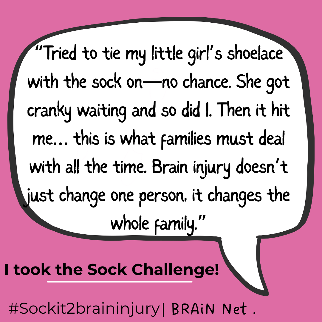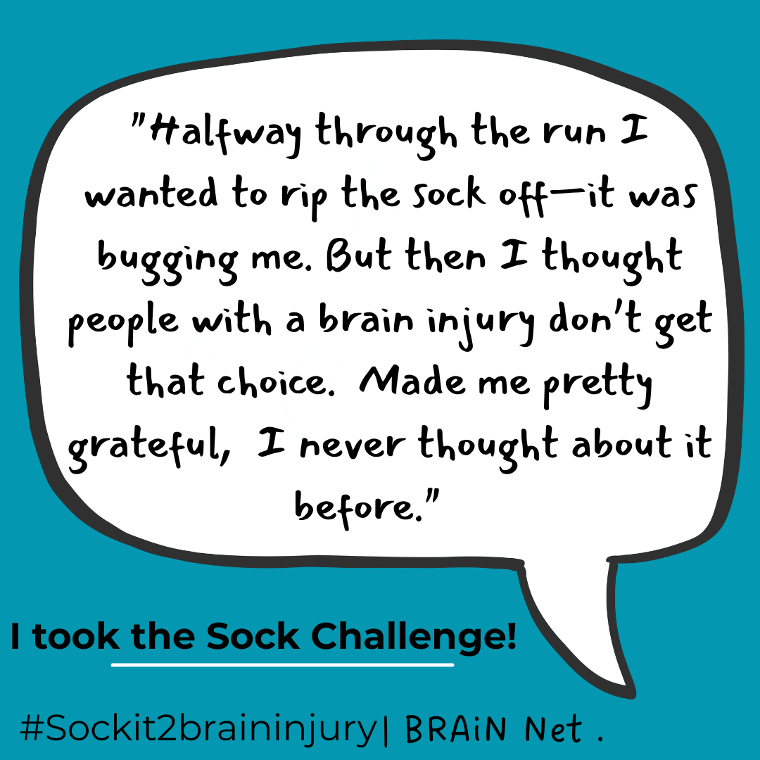 Share what happened - was it awkward, funny, frustrating, eye opening - don’t hold back! Post your words, a photo, or video with #SockIt2BrainInjury and tag us on @brainnet_inc (Instagram), @brainnetinc (Facebook).